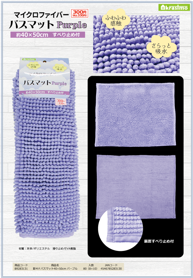 マイクロファイバー バスマット パープル