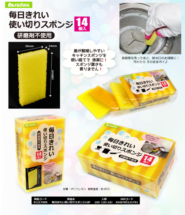 毎日きれい使い切りスポンジ14個入