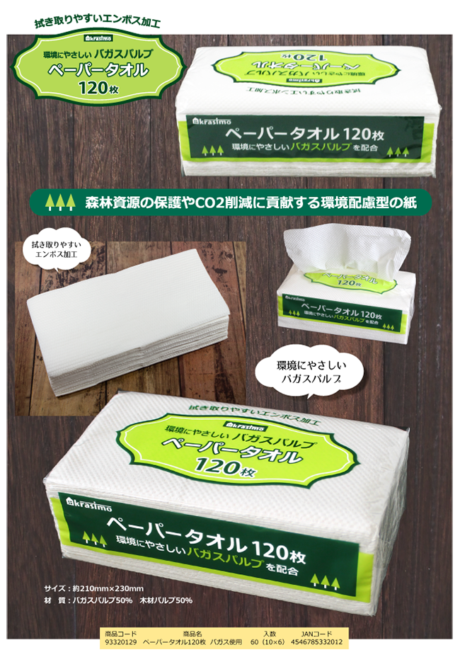ペーパータオル120枚 バガス使用