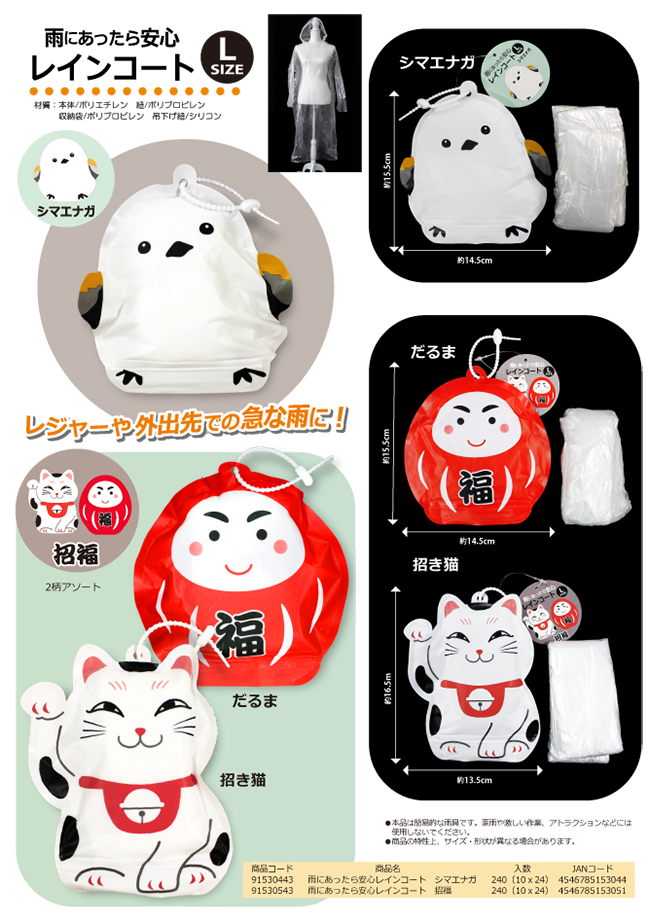 雨にあったら安心 レインコート L シマエナガ 招福